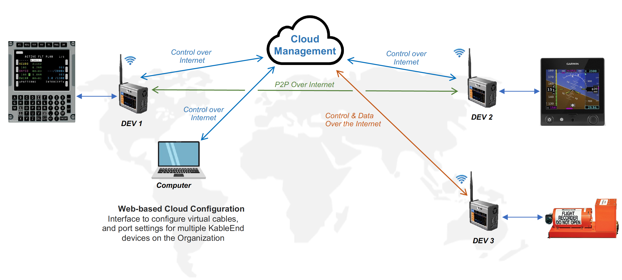 Using WirelessKable Cloud you can create your own virtual cables in between any ports of those Kable-Ends